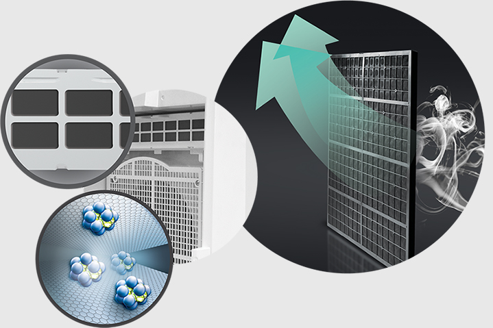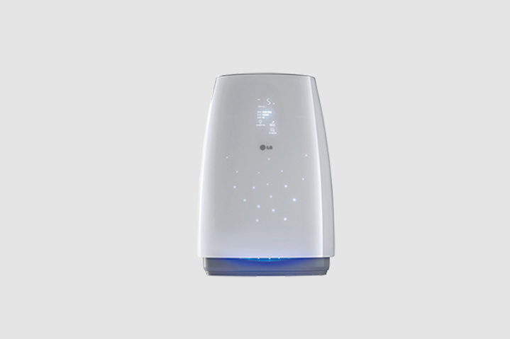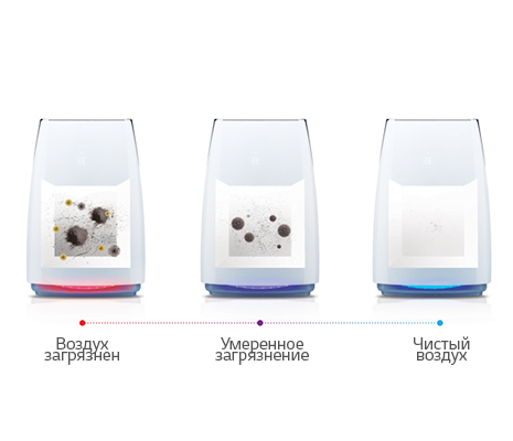 Уникальные функции, особенности. Среди уникальных функций можно отметить приятную подсветку на передней панели и отображение текущих параметров качества воздуха в комнате. Кроме того, очиститель имеет уникальную систему очистки воздуха, состоящую из фильтров, разработанных корпорацией LG.