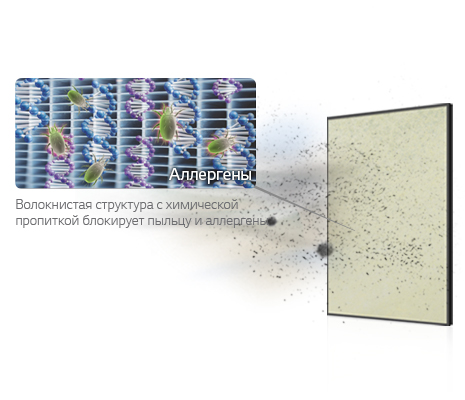 Очиститель LG PH-U451WN качественно фильтрует воздух от всех известных загрязнений, это пыль, шерсть домашних животных, пылевые клещи, бактерии, вирусы, а также неприятные запахи - запахи домашних животных, канализации, острые запахи с кухни запахи пищи, грязный воздух с улицы. В систему очистки комплекса входят предварительный фильтр, антиаллергенный фильтр (да, очиститель будет полезен для людей, страдающих аллергией), hepa-фильтр, угольный, а также увлажняющий фильтры.