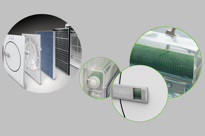 Уникальные функции, особенности. В очистителе Mitsubishi Electric установлены уникальные датчики, которые различают загрязнения - это датчики пыли, аллергенной пыльцы, неприятных запахов и табачного дыма. По возможностям система датчиков Mitsubishi Electric превосходит аналоги конкурентов. Помимо этого, у очистителя имеется система самоочистки предварительного фильтра, такой функции не встречается у конкурентов. На сегодняшний день самоочистка фильтров доступна только в кондиционерах Daikin премиум-класса.