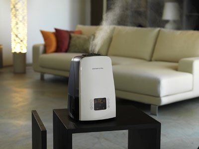 Регулярно заливать воду в увлажнитель и настроить непрерывную работу прибора. Днем необходимо выставлять максимальную мощность работы, так как днем небольшой шум от работы прибора менее заметен. А вечером и ночью можно настраивать на средний или минимальный уровень испарения.