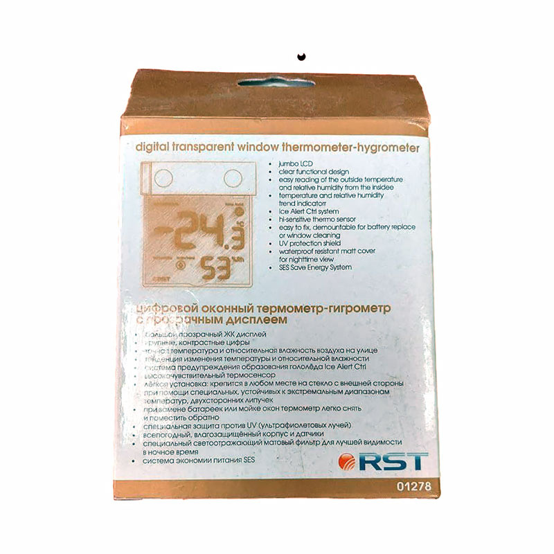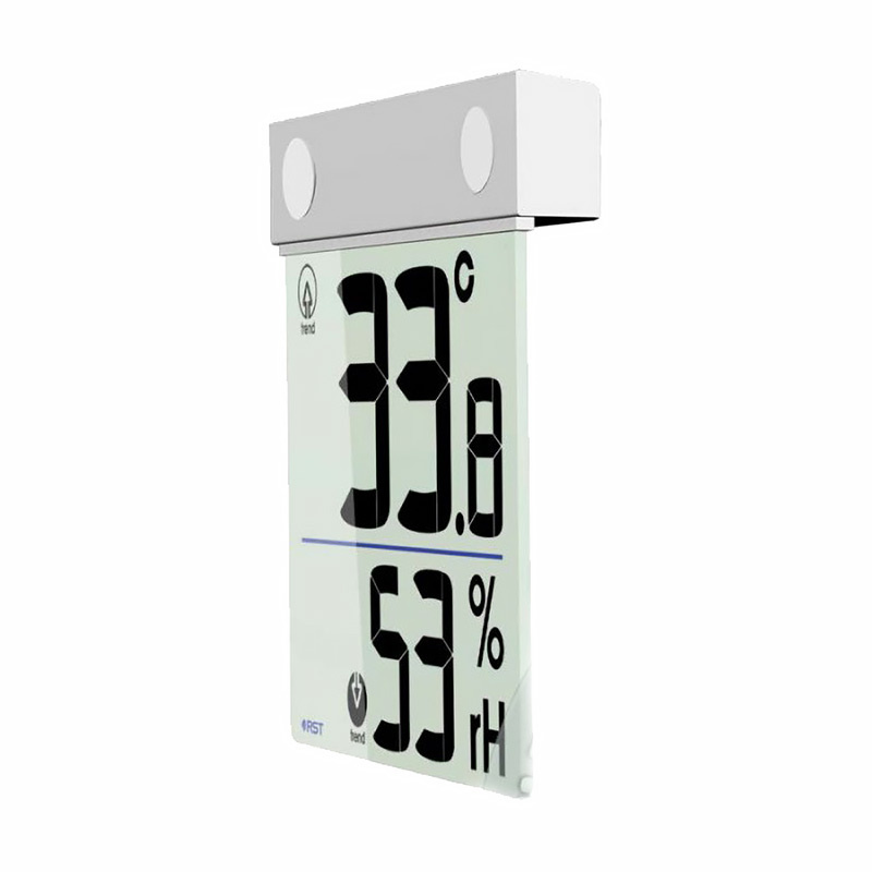 Современные оригинальный уличный термометр гигрометр с прозрачным дисплеем крепится на стекло окна снаружи при помощи всепогодной «липучки». При этом для замены элемента питания не придётся отдирать термометр и клеить вновь. Удобные салазки для крепления термометра остаются на окне, а термометр легко отщёлкивается.