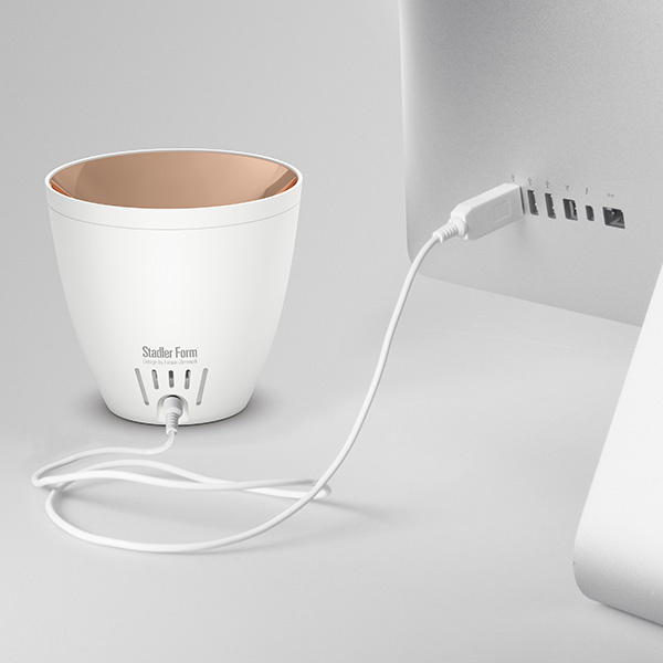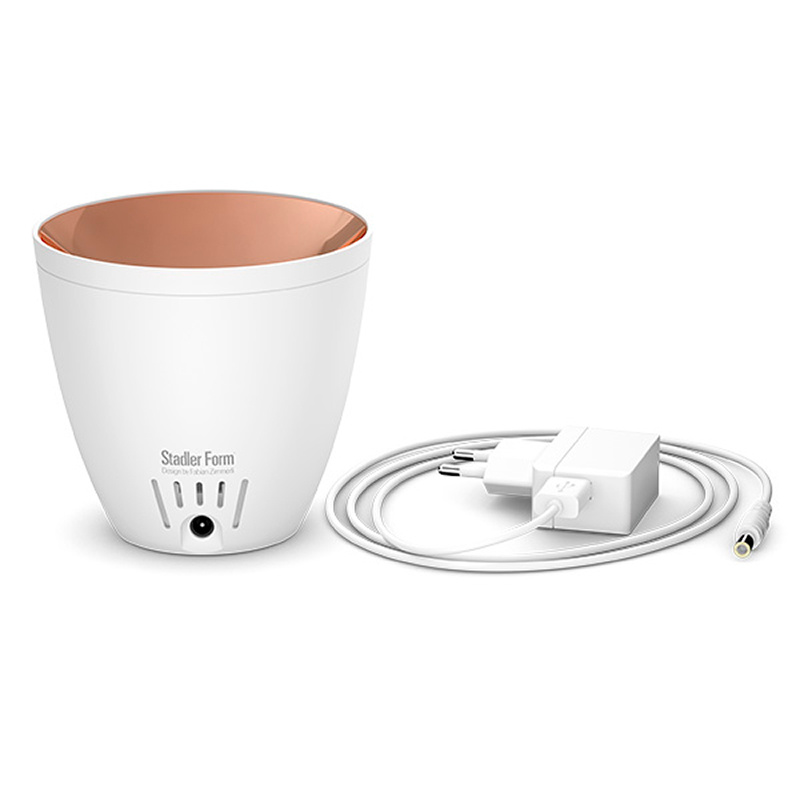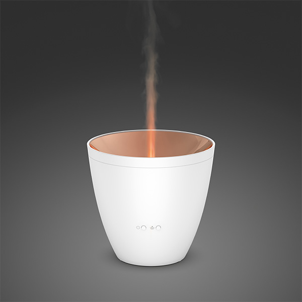 Stadler Form Zoe - это уникальный по своей природе прибор - миниатюрный ароматизатор, способный имитировать пламя живого огня. Легкая струя пара, создаваемая ультразвуковой мембраной, подсвечивается и живописно отражается от глянцевой бронзовой поверхности, создавая эффект пламени. Созерцание такого прибора завораживает, а обманчивое бронзовое пламя и распыляемые аромамасла создают романтическое настроение.