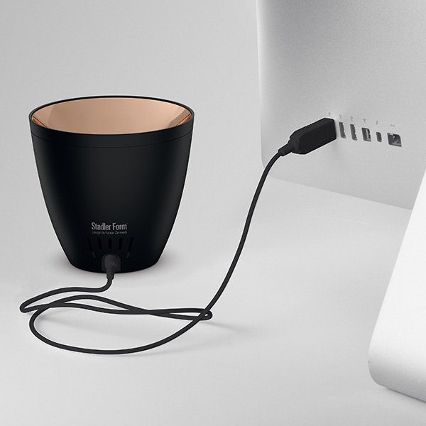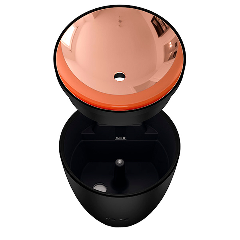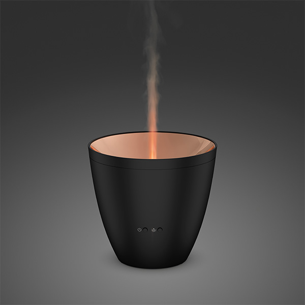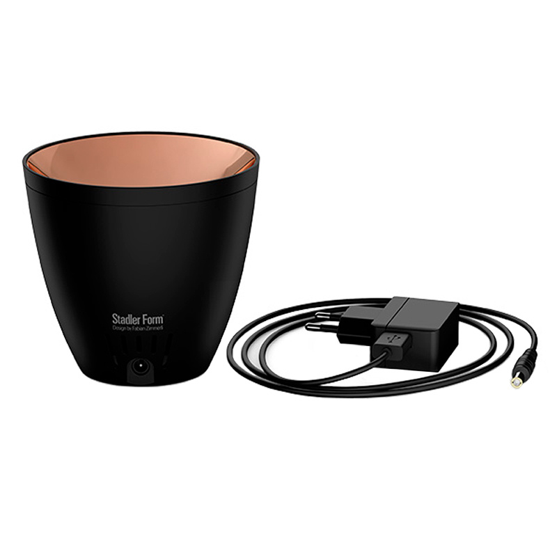 Stadler Form Zoe - это уникальный по своей природе прибор - миниатюрный ароматизатор, способный имитировать пламя живого огня. Легкая струя пара, создаваемая ультразвуковой мембраной, подсвечивается и живописно отражается от глянцевой бронзовой поверхности, создавая эффект пламени. Созерцание такого прибора завораживает, а обманчивое бронзовое пламя и распыляемые аромамасла создают романтическое настроение.