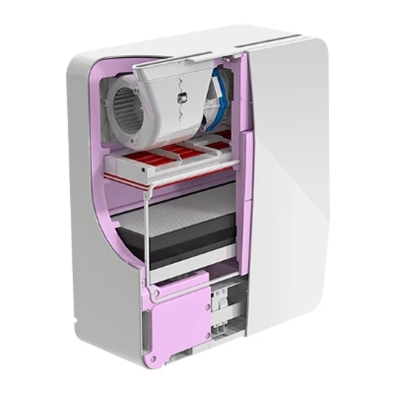 Воздух с улицы через заслонку поступает в прибор и проходит систему очистки и обогрев. Тион 3S Special укомплектован фильтром грубой очистки класса G4 и антиаллергенным HEPA фильтром Е11 (H11).