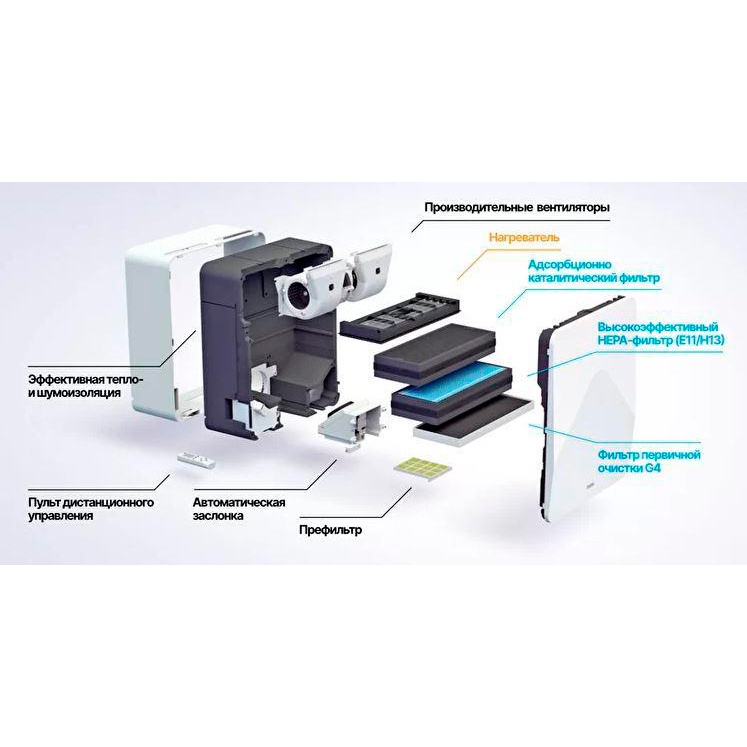 Тион 4S - это обновленное поколение моделей 3S, которые также состоят из каскада фильтров, блока вентиляторов, РТС-нагревателя и датчиков управления.