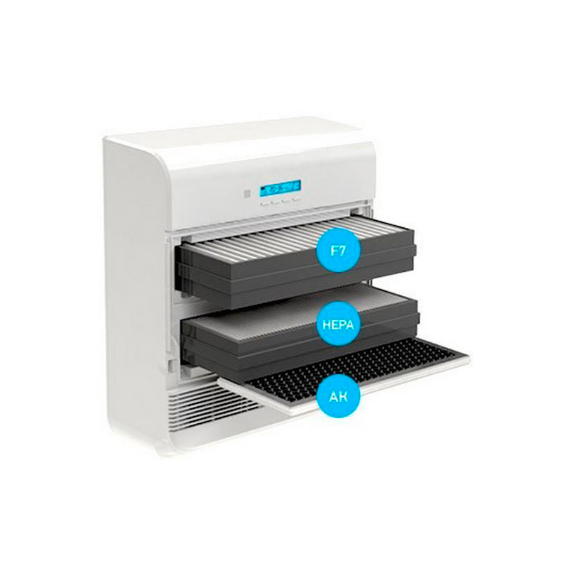 При поступлении с улицы воздушный поток проходит тройную систему очистки: