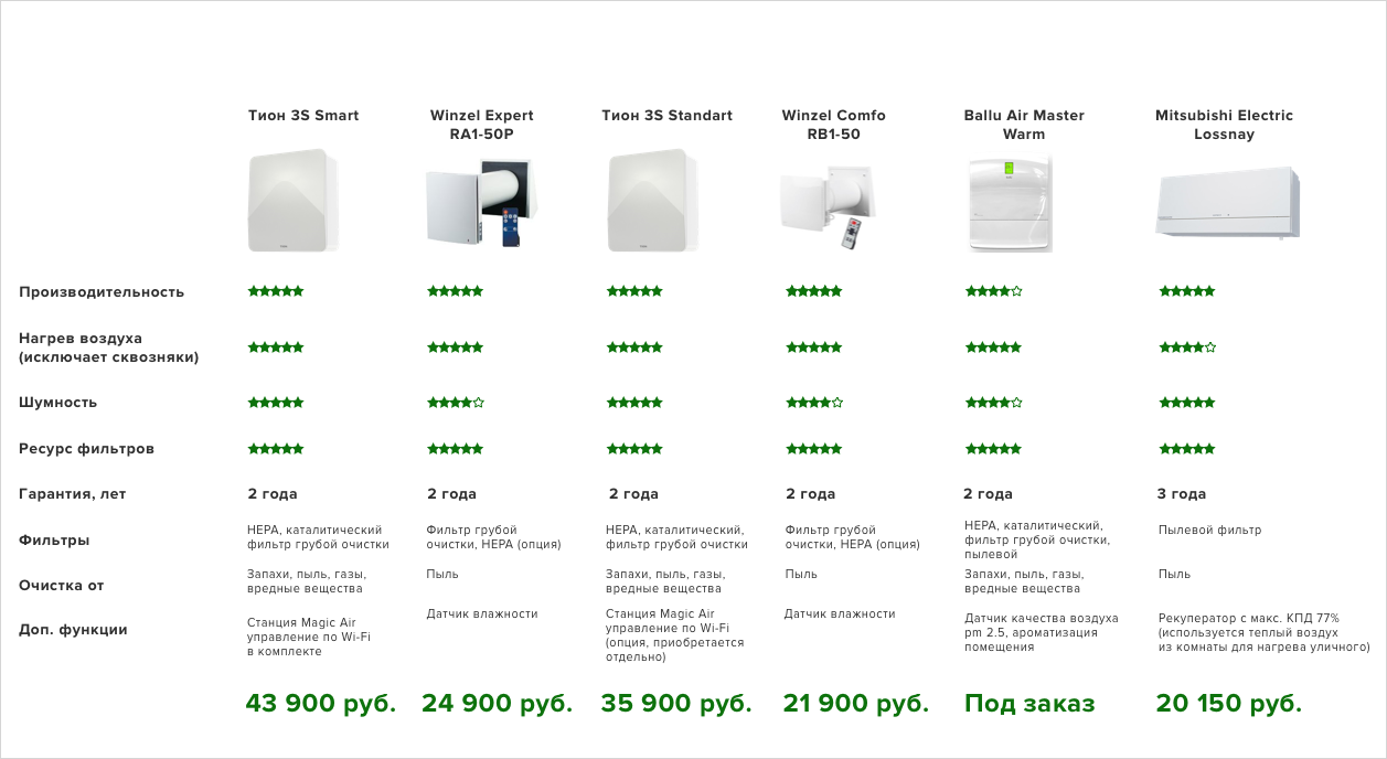 Какую модель проветривателя подойдёт вам? Выберите свою модель в таблице сравнения